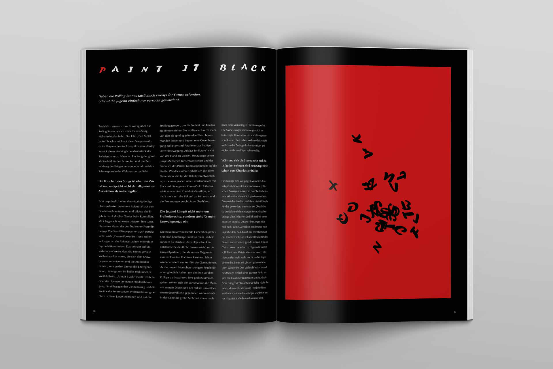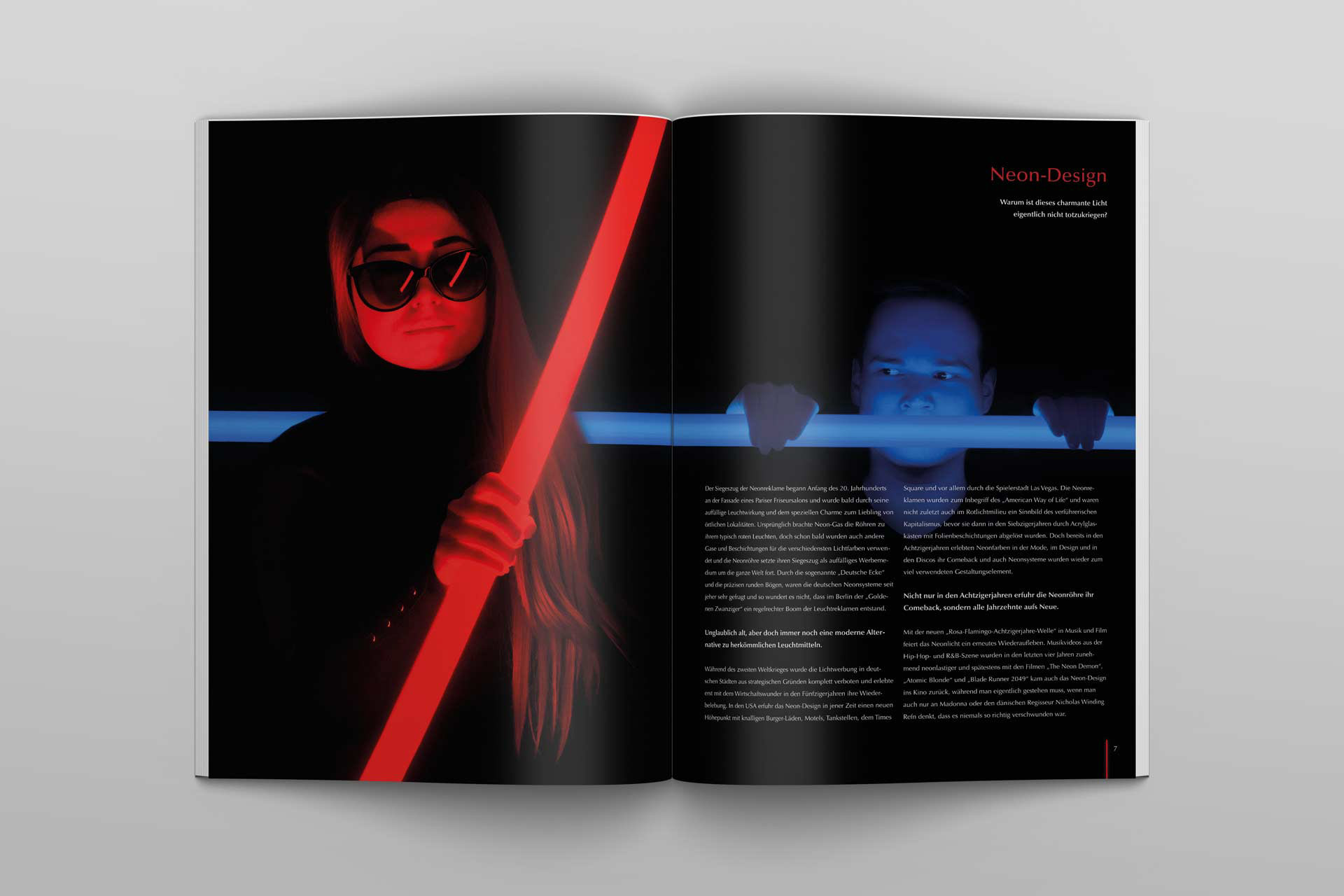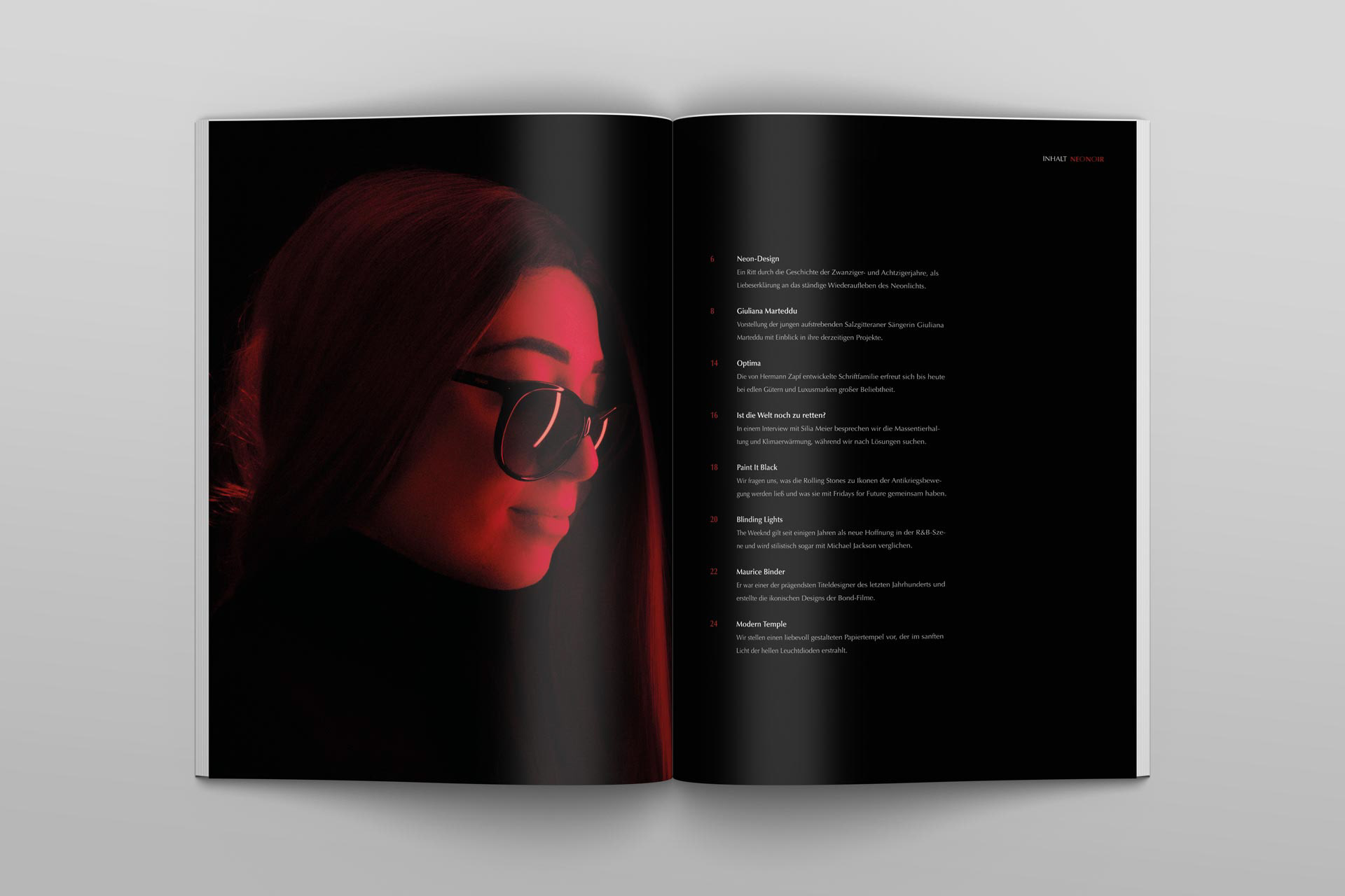 Dieses Magazin dient als Design- und Lifestyle-Magazin. Es greift in der ersten Ausgabe das Thema Neon-Design und dessen Geschichte auf. Zudem wird von mir die Klimakrise behandelt und die Sängerin Giuliana Marteddu in Porträts vorgestellt.